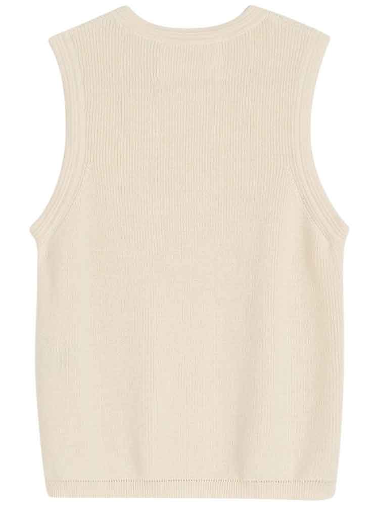 Designet er ærmeløst og har en klassisk rund hals, som skaber en enkel og feminin silhuet. De fine rib- og kantdetaljer giver toppen et raffineret udtryk og understreger Aiayus fokus på kvalitet og naturlige materialer.