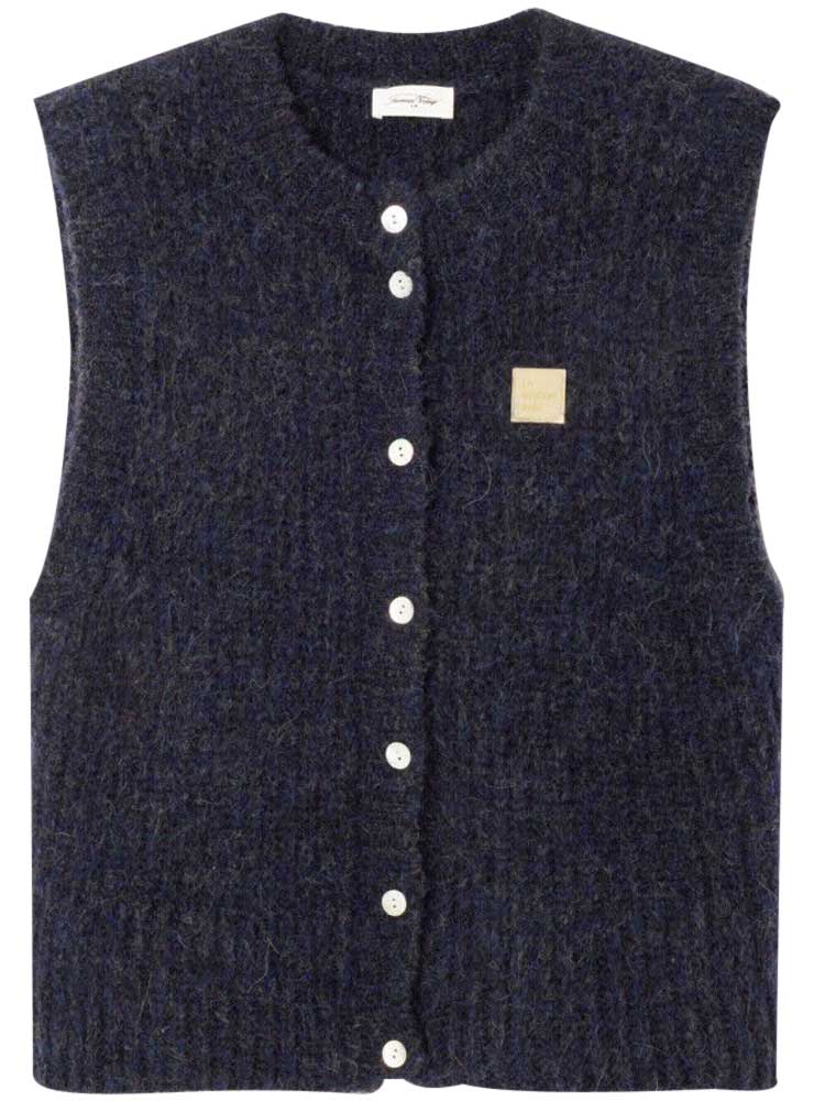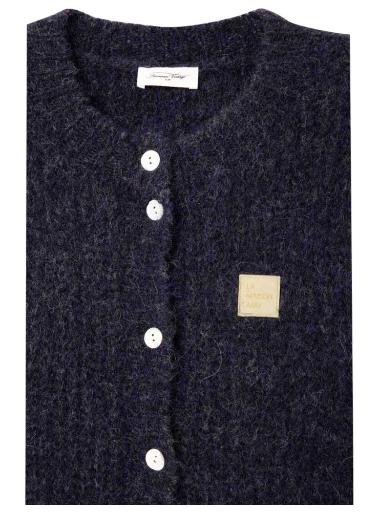 Den melerede navyfarve er alsidig og tidløs og matcher både lyse og mørke nuancer i garderoben. Brug den over en klassisk skjorte med brede bukser for et afslappet hverdagslook, eller lad den tone ned over en kjole for et blødt, lagdelt udtryk. Midt i designet mærkes American Vintages signatur — den intuitive balance mellem komfort, enkelhed og moderne elegance.
