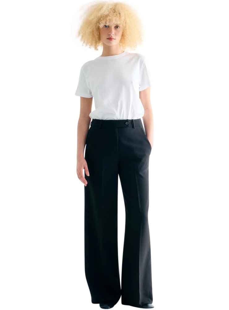 Lovechild 1979 Harper Pants Dark Grey er fremstillet i en glat metervare af polyester, viscose og elastan. Materialet sikrer en behagelig balance mellem struktur og bevægelse, mens den forskudte asymmetriske lukning foran giver et unikt twist til den ellers enkle silhuet. Bukserne har skrålommer i siderne og et rent snit, der understreger Lovechilds evne til at forene funktionalitet og æstetik. Den løse pasform giver et afslappet udtryk, uden at gå på kompromis med elegance.