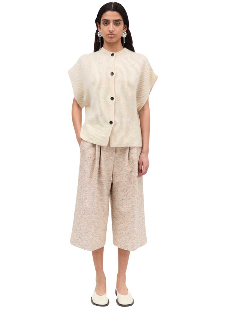 Opgrader din garderobe med MKDT Studio Thilda Yak ivory og oplev en strik, der forener naturlig varme, moderne enkelhed og udsøgt komfort. Se hele vores udvalg af MKDT Studio hos Cristels: https://cristels.dk/collections/mkdt-studio.