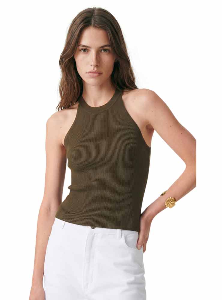 Elegant ærmeløs top i khaki