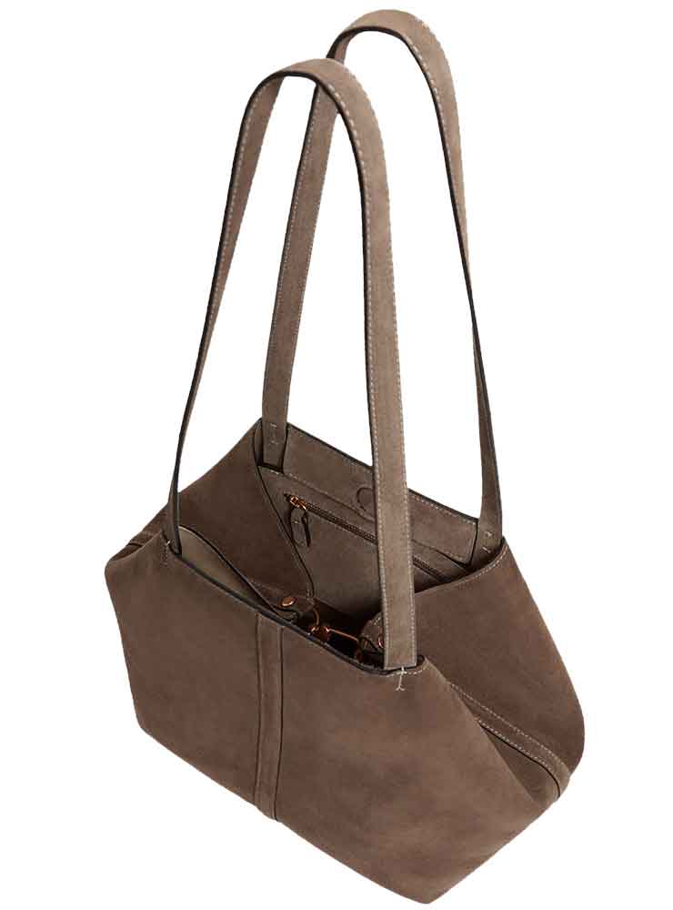 Vanessa Bruno Small Velvet Tote Taupe er en stilfuld hverdagstaske, der forener funktionalitet, blød struktur og tidløs elegance i ét design, som hurtigt bliver en fast del af garderoben.