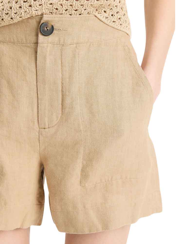 Shortsene har et enkelt design med fokus på funktion og bevægelsesfrihed. Den elastiske talje gør dem behagelige at have på, mens lommerne i siden tilføjer praktisk funktionalitet. Stoffets naturlige struktur giver en let, luftig fornemmelse, der gør modellen ideel til sommerbrug. Den afslappede pasform gør shortsene nemme at style – både med t-shirts, skjorter eller let strik for et elegant casual look.