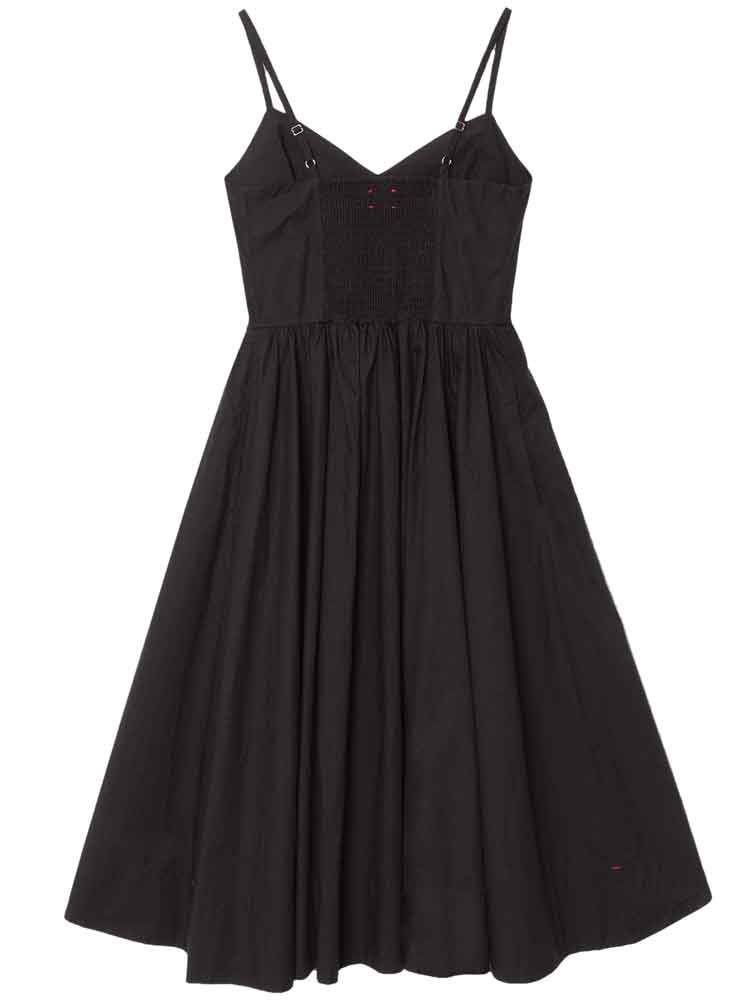 Den rene konstruktion og den sprøde bomuld gør kjolen både elegant og anvendelig. Samtidig understreger den klassiske sorte nuance det tidløse design.